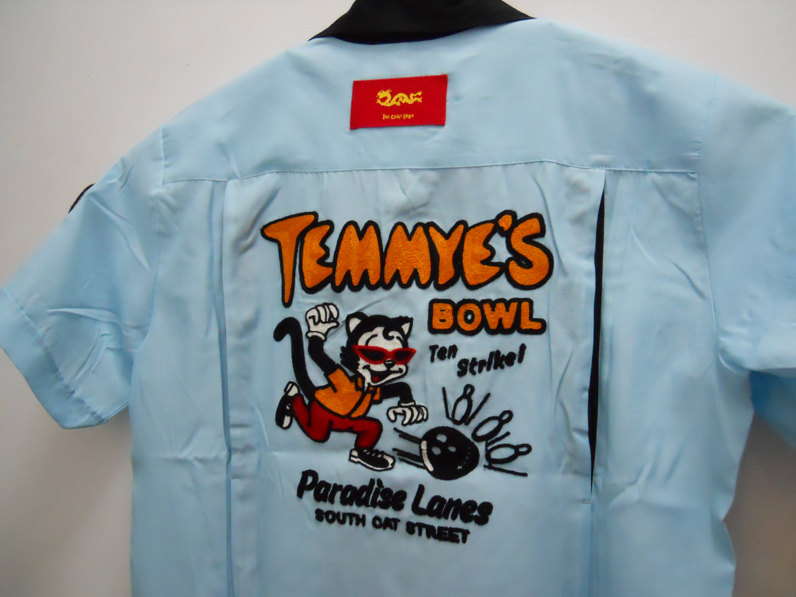 柄、文字は チェーンステッチ刺繍! 袖ワッペン! ボーリングピンボタン仕様!
